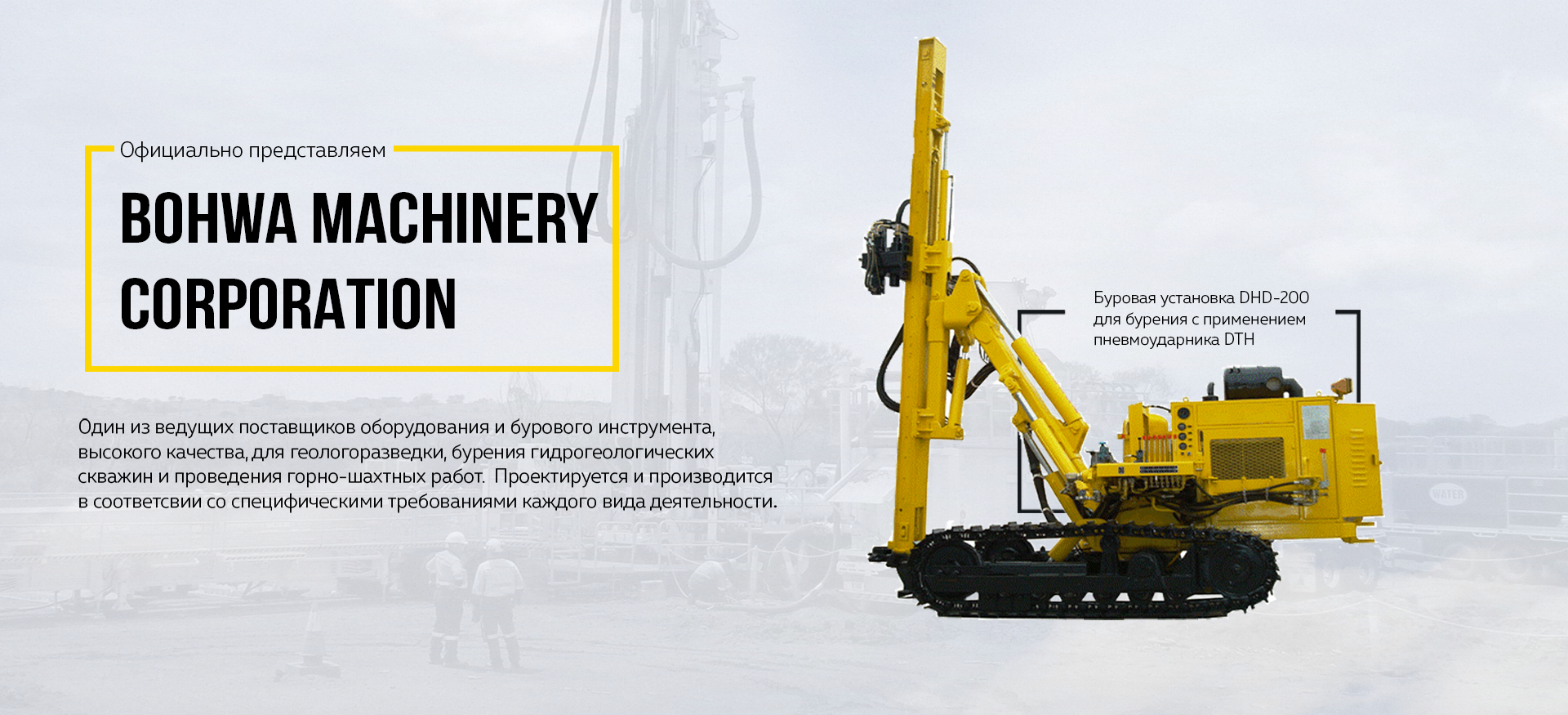 Bohwa Machinery Corporation – один из ведущих китайских поставщиков оборудования для геологоразведки, бурения гидрогеологических скважин и проведения горно-шахтных работ. Принципами работы компании являются сочетание высокого качества и конкурентоспособных цен, обеспечение высокого уровня сервиса, постоянное совершенствование и развитие.